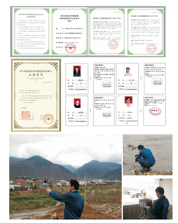四川中衡检测技术有限公司与于2014年3月通过了四川省环保厅组织的社会环境检测机构业务能力认定,核心技术人员均通过了四川省环境监测总站的上岗考核,能够为社会提供具备公信力的检测报告。截止2021年6月,我公司已具备检测环境类1415项的能力。