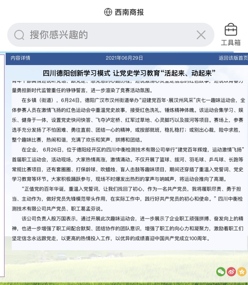 而中衡党支部,在党史学习教育中,创新学习模式,将运动会与党史学习教育结合,运用“运动+竞赛”的模式,让员工能学习到老一辈共产党员不怕苦不怕累、学会合作、挑战自己的精神。认真贯彻执行党章,切实履行党的建设责任,严格落实教育、管理、监督和服务党员的职责,充分发挥战斗堡垒作用,赢得党员、群众的信任和拥护。
