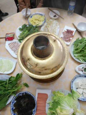 5点下山,回到酒店,开始晚餐:特色臧家火锅。火锅的味道还是很不错的,主题以素菜为主肉食为辅,厨师刀工特别好,肉薄似纱,私人订制一人一片。