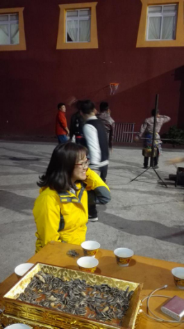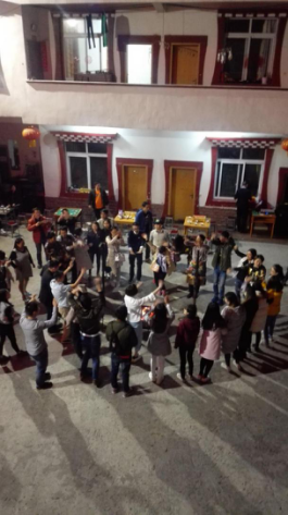 晚饭后回房间休憩修整,8点30晚上的活动便开始了——烤全羊和跳锅庄!跟着热情的“瑟浪”和“以沫”一阵的群魔乱舞,尽管大家的舞姿都迷之奇特,但是在当下的气氛下依然觉得很美好,每个人脸上洋溢的都是满满的开心。一阵活络后大家围坐下来开始准备吃!烤!全!羊!!过程中不断有游客上去唱着自己拿手的歌曲为大家助兴,其中包括我们的歌神谦谦,一开口就惊艳四座,欢呼声鼓掌声不断。热热闹闹的篝火晚会以及一天的行程在导游的歌声中结束。