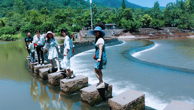 踩着间隙不一的石头一路前行,溪水从上至下流进河里,瞬间有种脱鞋赤脚玩水的冲动。真是应了那句广告词“透心凉,心飞扬啊。”