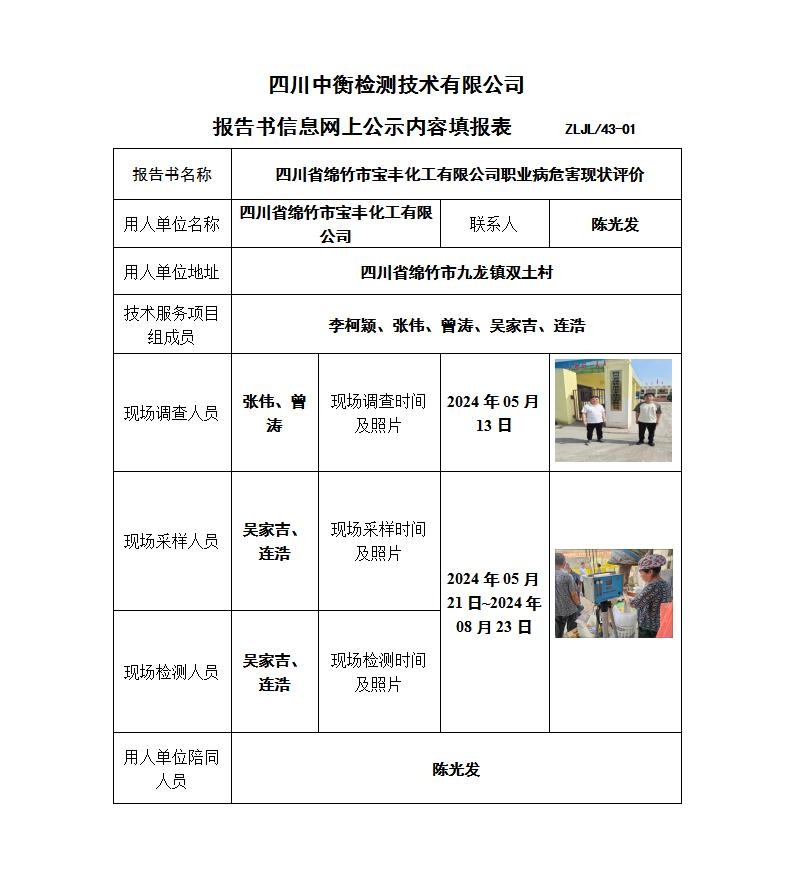 四川省绵竹市宝丰化工有限公司职业病危害现状评价