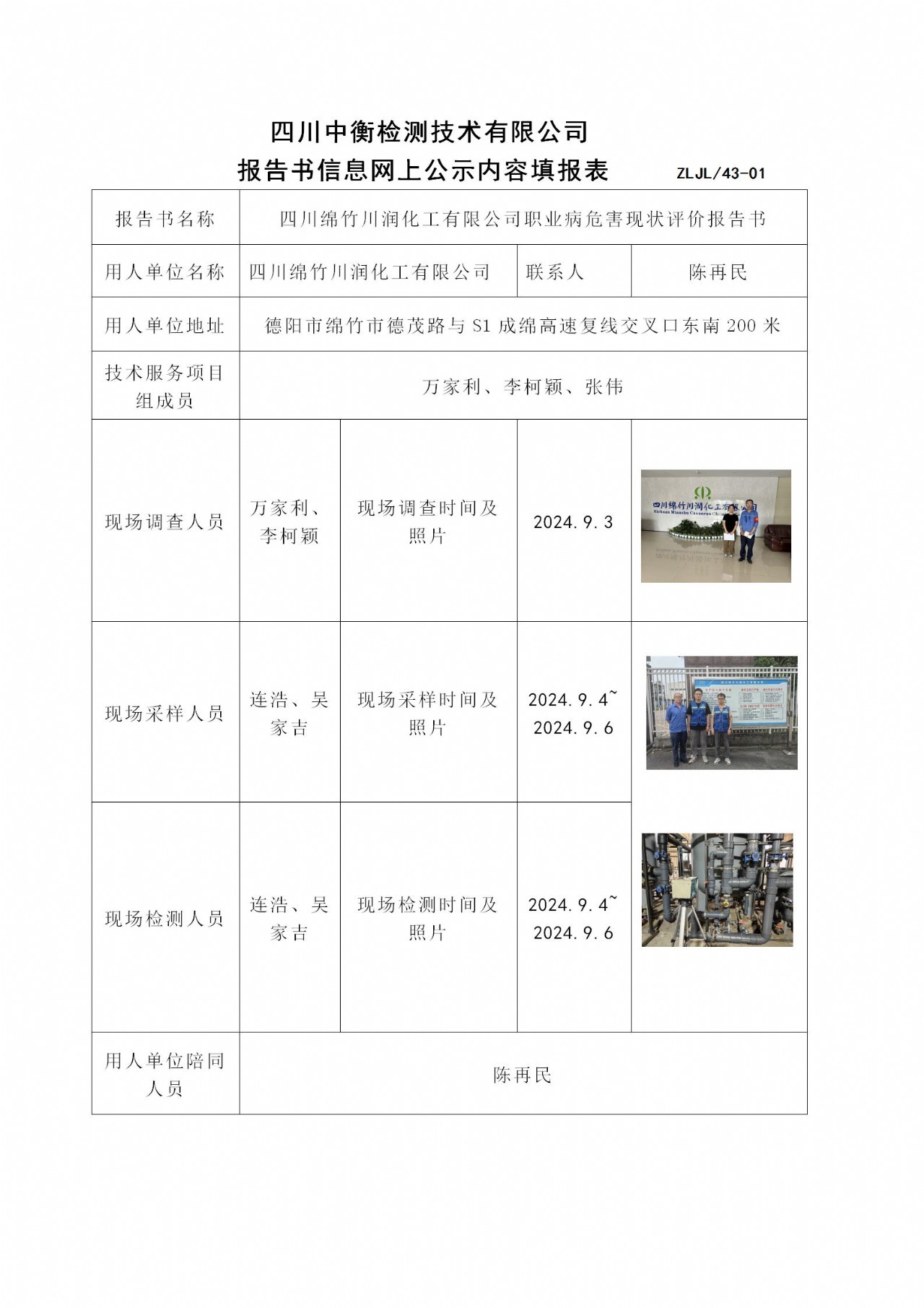 四川绵竹川润化工有限公司职业病危害现状评价