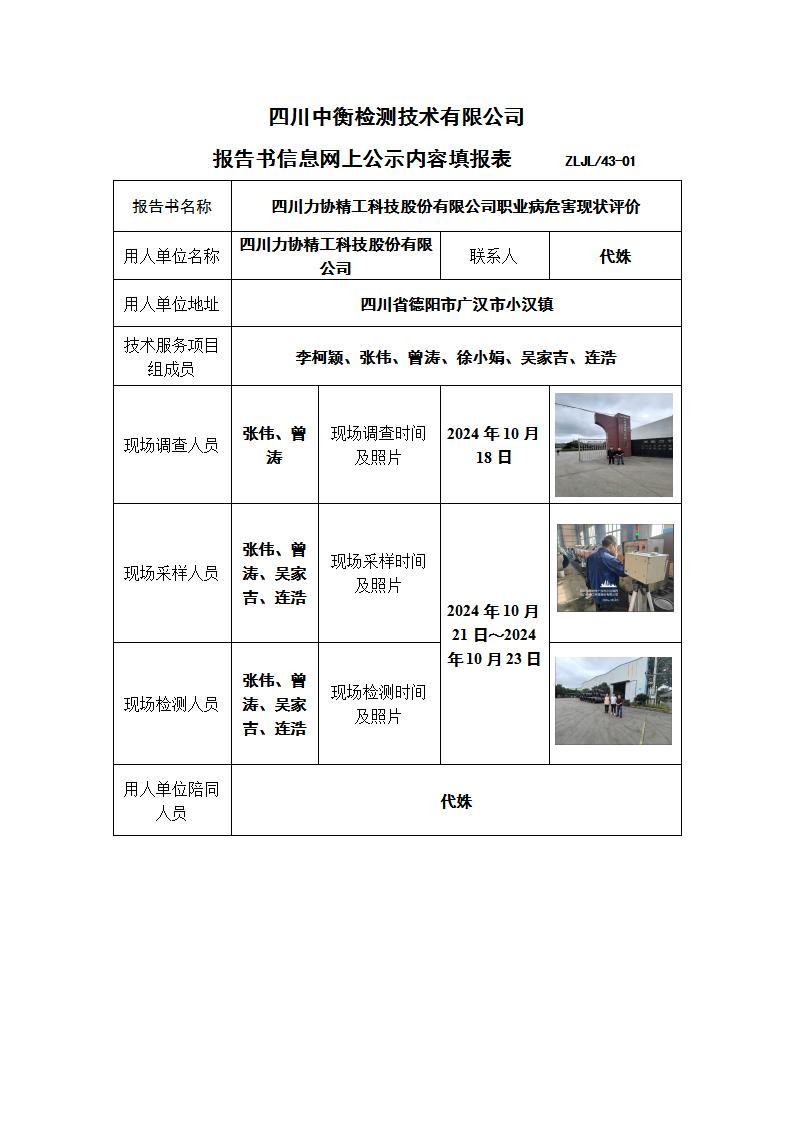 四川力协精工科技股份有限公司职业病危害现状评价