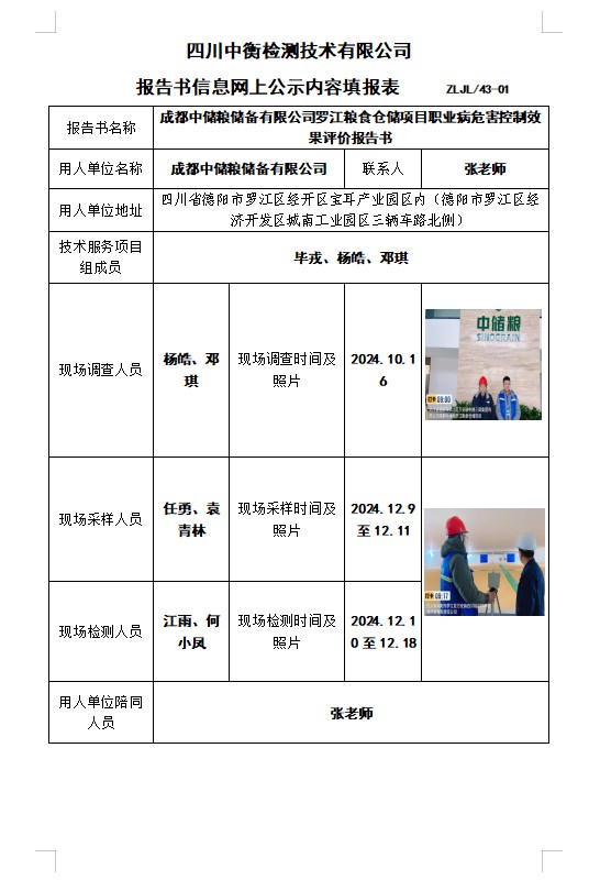 成都中储粮储备有限公司罗江粮食仓储项目职业病危害控制效果评价报告书