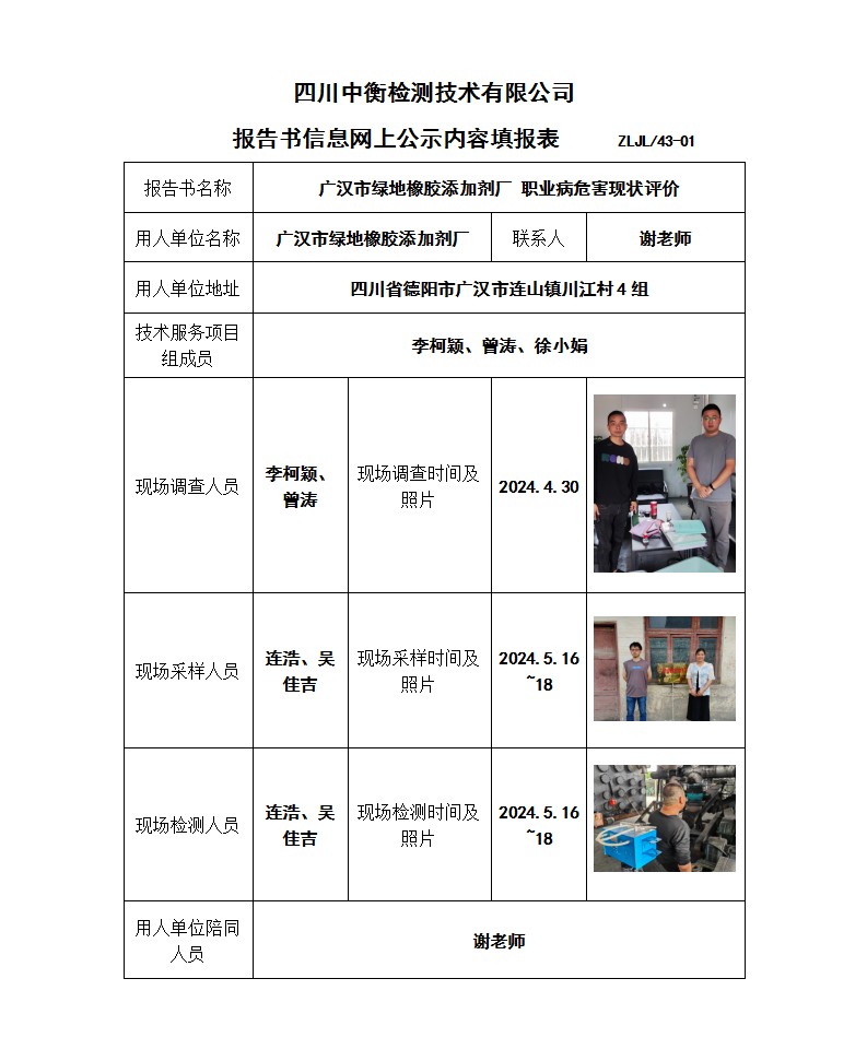 广汉市绿地橡胶添加剂厂 职业病危害现状评价报告书