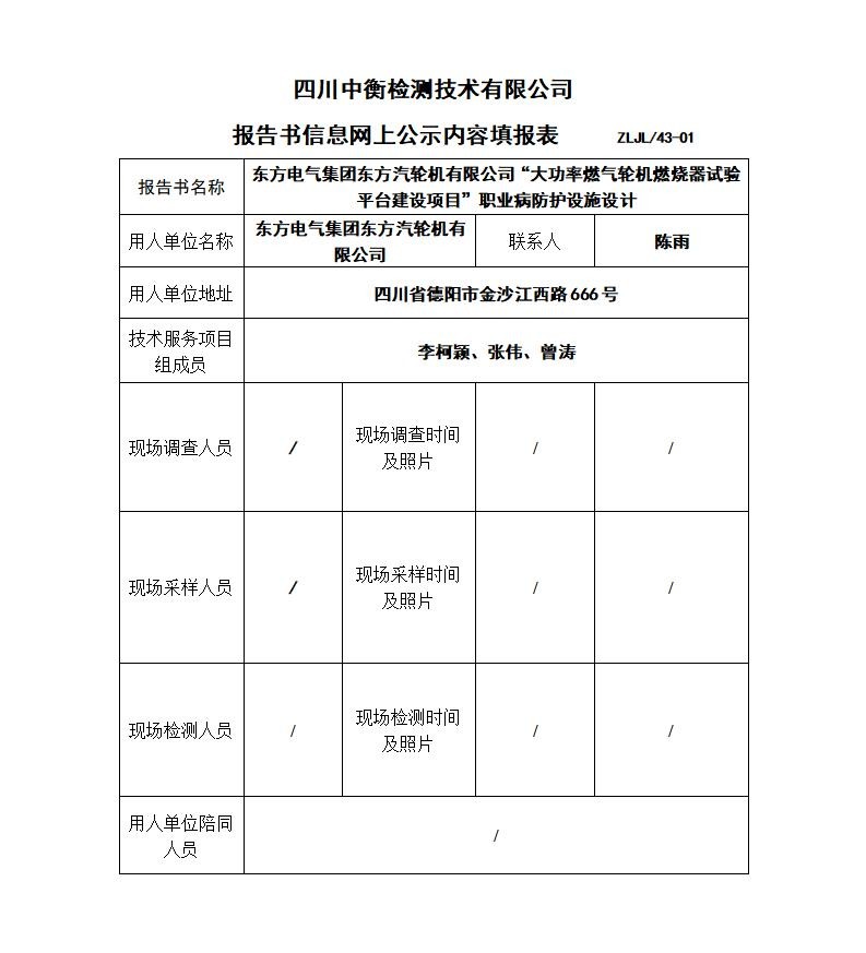 东方电气集团东方汽轮机有限公司“大功率燃气轮机燃烧器试验平台建设项目” 职业病防护设施设计