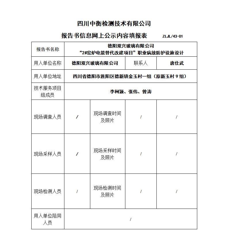 德阳双兴玻璃有限公司“2#窑炉电能替代改建项目”职业病放防护设施设计
